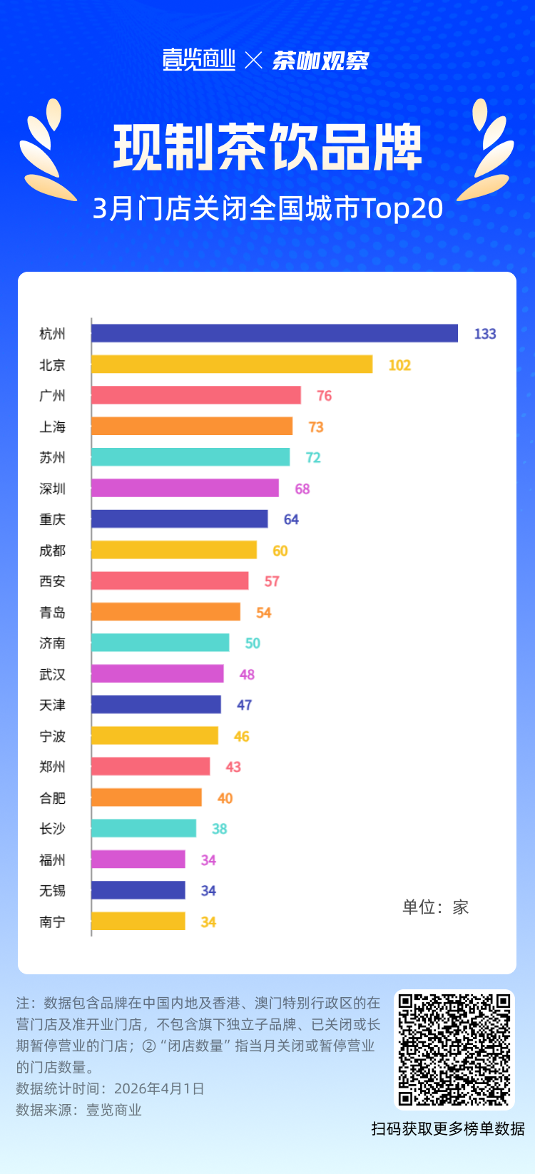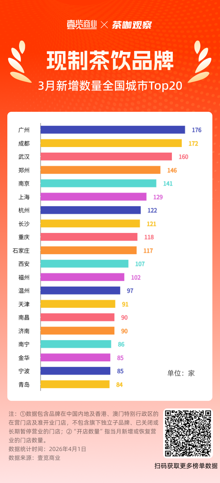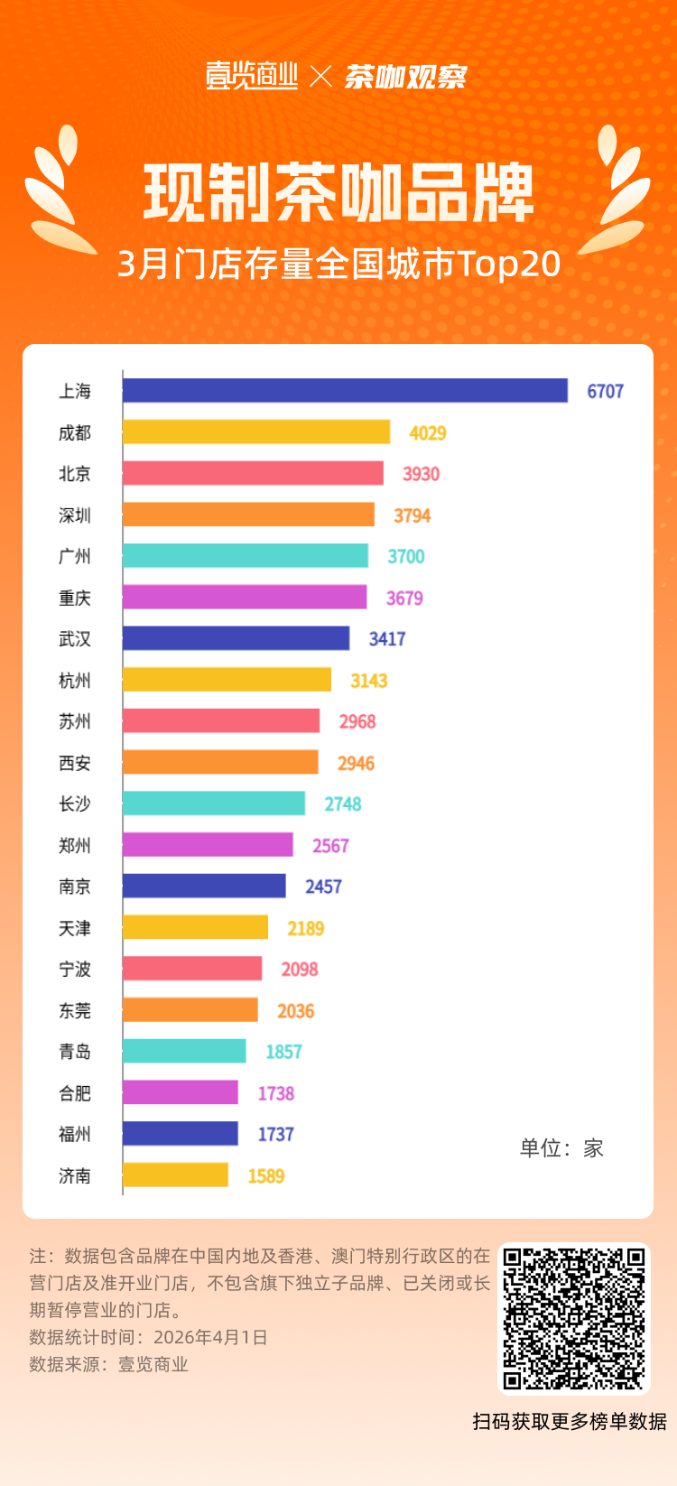 在我们最新发布的《中国现制茶咖行业月度报告(2026年3月)》完整版中,我们还深度拆解了50个品牌的区域拓展全景: