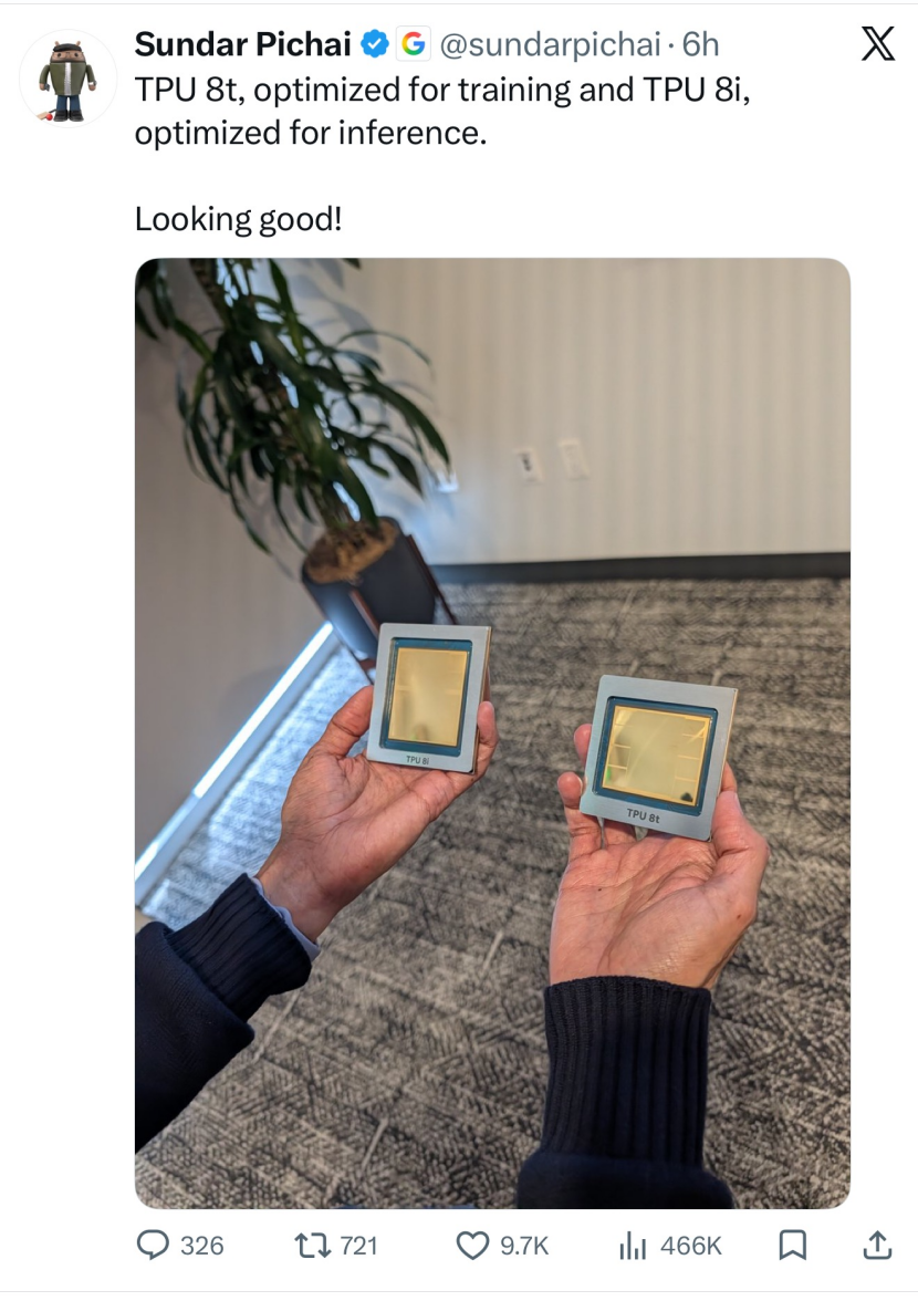 此次发布同时涉及第七代TPU“Ironwood”的全面商用(GA)以及第八代架构(TPU v8)的首次分化。这反映了谷歌在应对巨额资本支出压力时,正试图通过硬件深度特化来优化其云业务的边际利润。