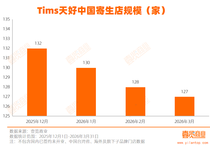 从闭店看,Tims天好中国2026年一季度共关闭52家门店,2025年12月和2026年1月,闭店均为16家,2月增至20家,也就是说整个一季度Tims天好中国门店不仅没有增长反而出现了收缩。