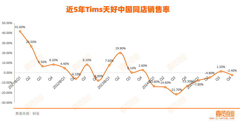 但是,从同店销售增长率来看,Tims天好中国在产品和营销方面的动作效果并不理想。2021年下半年开始,同店销售增长率开始放缓;2024年全面大幅下滑。2025年负值有所收窄,但整体仍在收缩。
