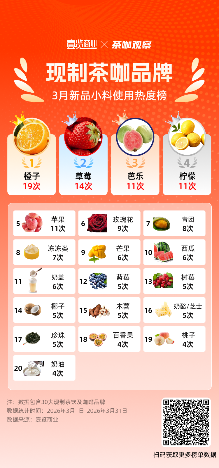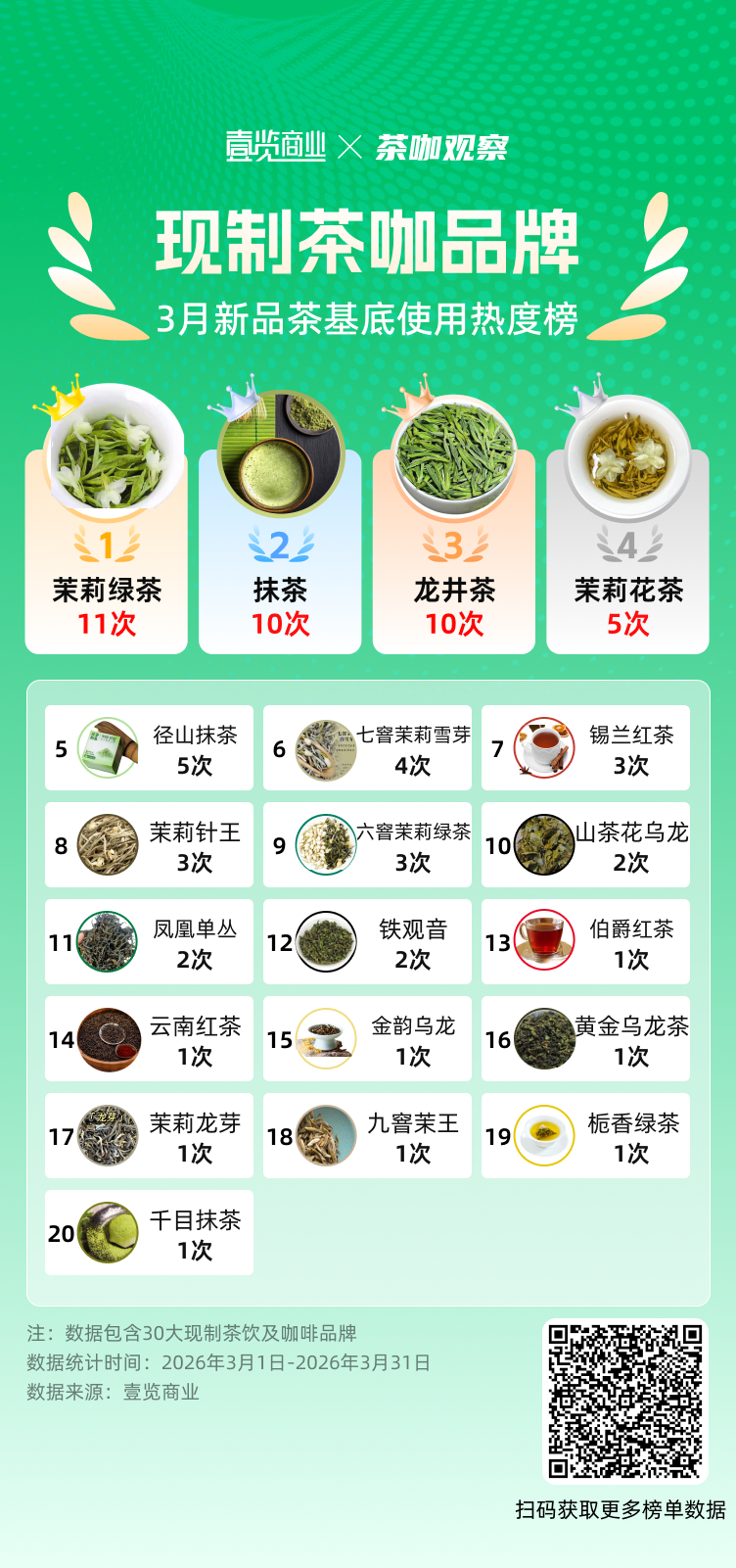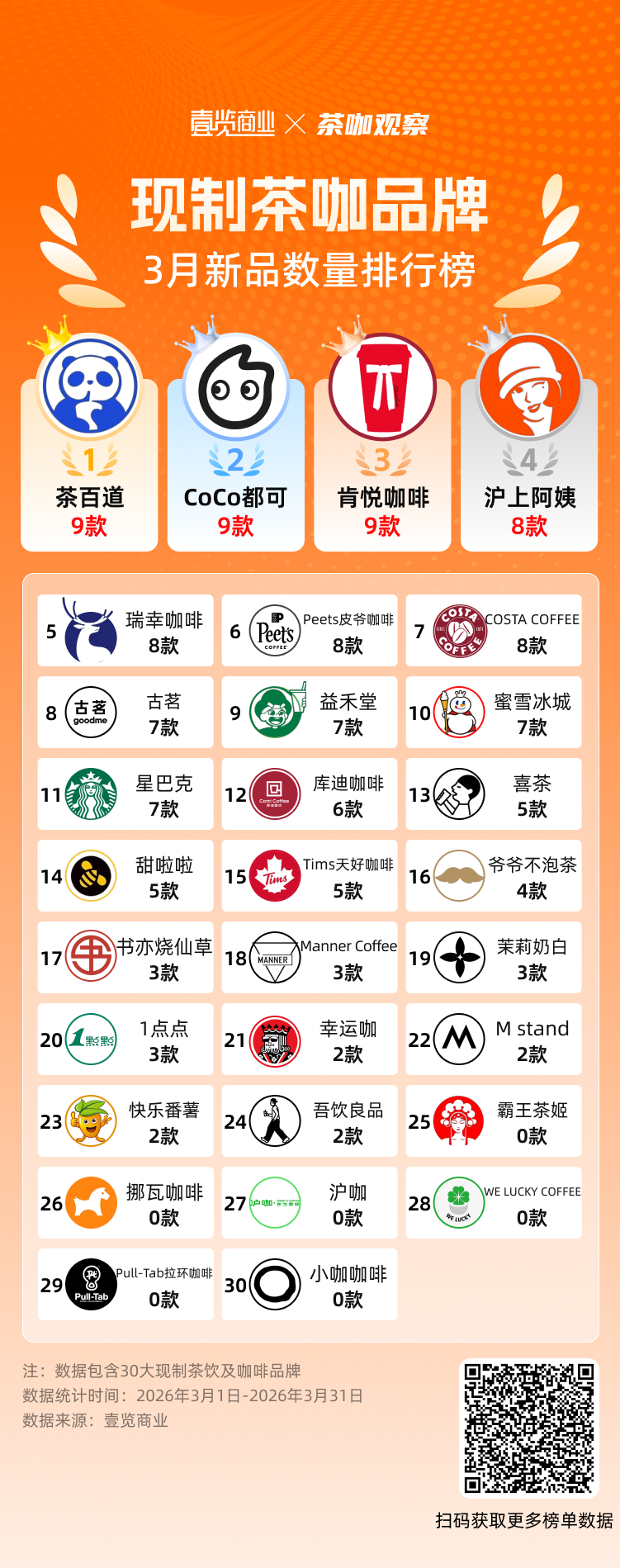 更多茶饮咖啡行业数据,请关注壹览商业&茶咖观察联合发布的《中国现制茶咖行业月度报告(2026年3月)》完整版,报告中我们还深度拆解了50个茶咖品牌。